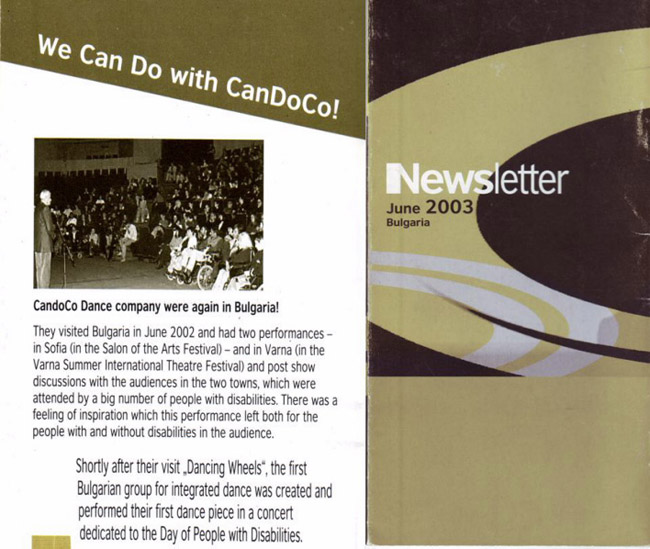 Publication in the Bulletin concerning the foundation of the Dancing Wheels First Bulgarian Formation for Integrate Dance.